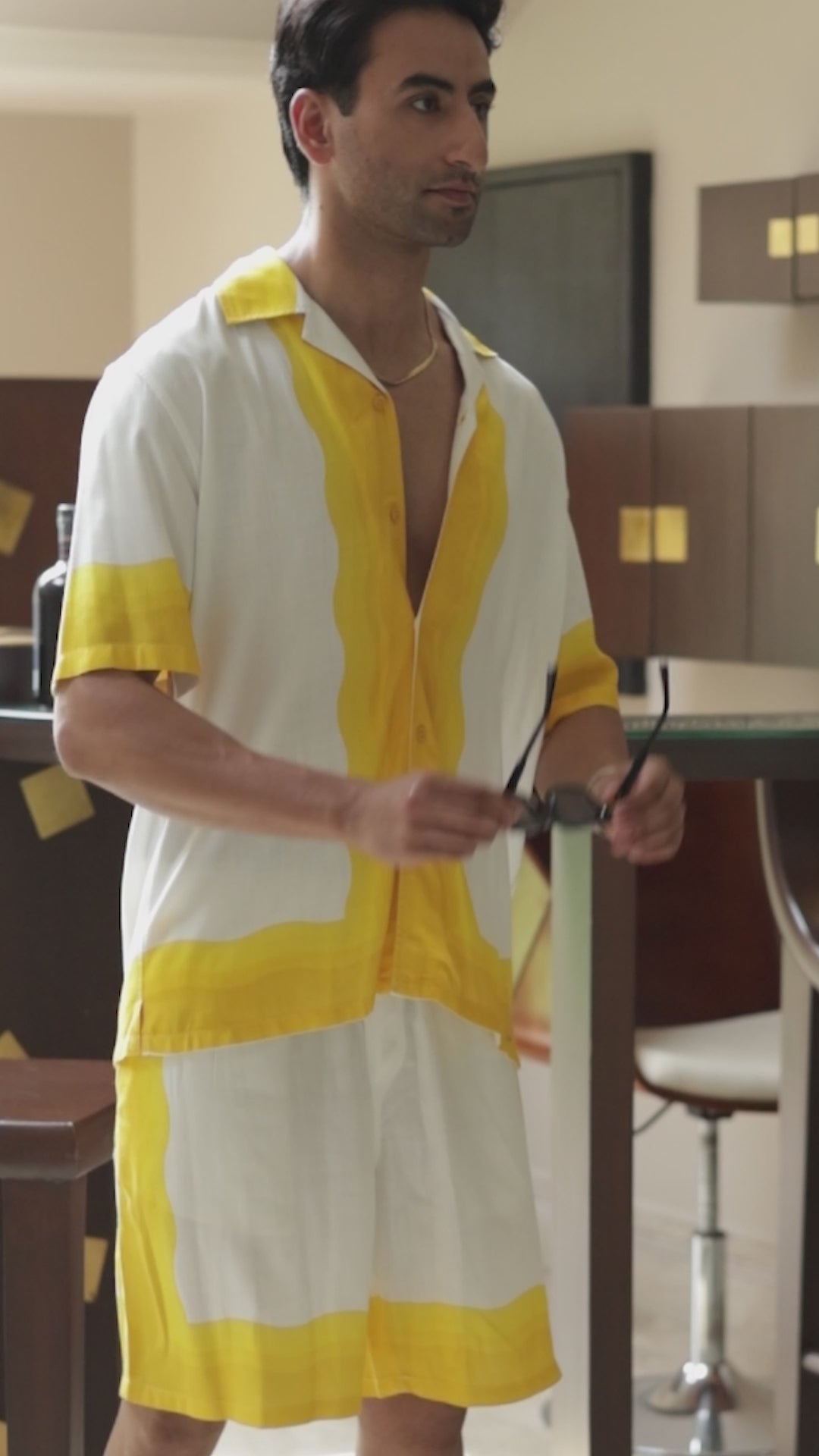 Brighten up your wardrobe with the Yellow Iris Co-Ord set. Inspired by the golden hues of dawn, this shirt features a calm white base with a splash of yellow. Crafted with CNC Viscose Slub fabric, it's a refreshing sip of the morning in fabric form, perfect for those who are born to stand out.